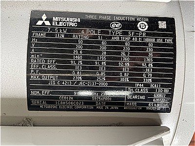 【商品番号:C3329 三菱 7.5kW-4P (プレミアム) [SF-PR 7.5kW-4P ]